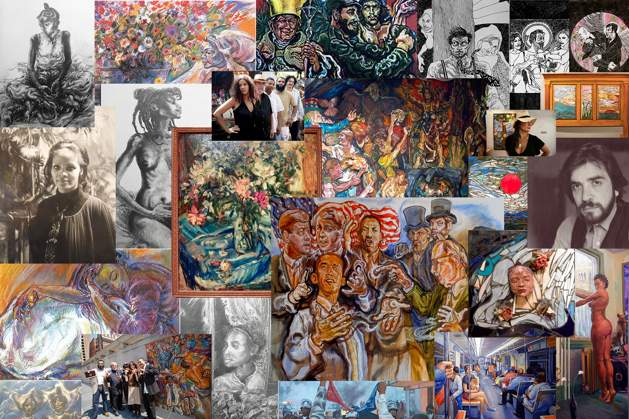 The Tiberino Art Family, often called “the West Philly Wyeths,” is a multigenerational creative force whose story is rooted in both love and relentless creativity. At the center is matriarch Ellen Powell Tiberino (1937–1992), a trailblazing African American painter and sculptor. Trained at the Pennsylvania Academy of the Fine Arts, Ellen created bold figurative works that confronted race, faith, family, and social justice. Her paintings and reliefs—often large, emotional, and unflinching—capture both the tenderness and the tension of Black life in Philadelphia.